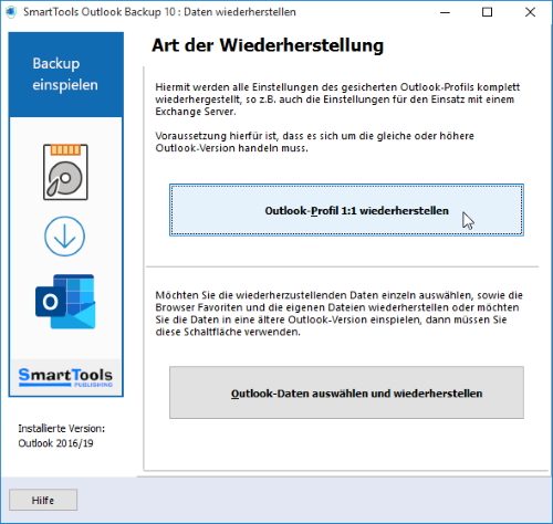 Darüberhinaus kann die Software Installationen von Outlook 1:1 sichern und wiederherstellen – ideal, wenn das System neu aufgesetzt werden soll oder gleich der ganze Rechner ausgetauscht wird.