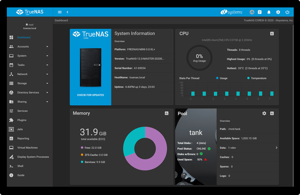 TrueNAS (ehemals FreeNAS) ist ein populärer NAS-Server auf FreeBSD-Basis.