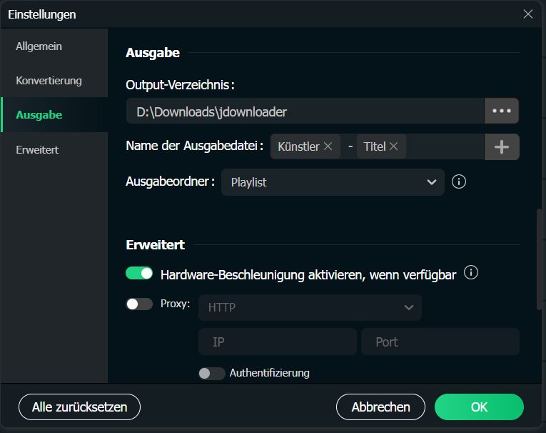 - Der Ausgabeordner kann nicht in der Download-Queue angepasst werden