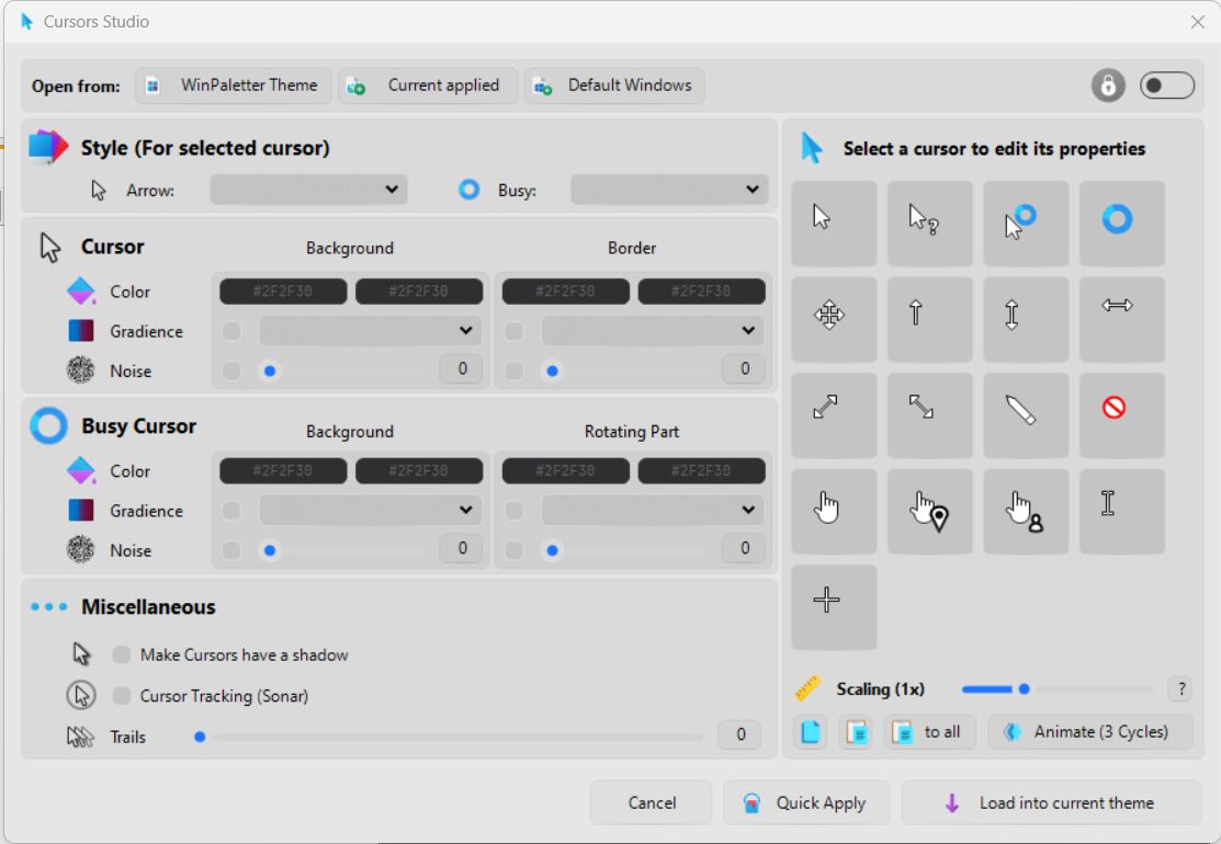 - mit dem Cursor Studio den Mauszeiger und dessen Verhalten zu editieren,