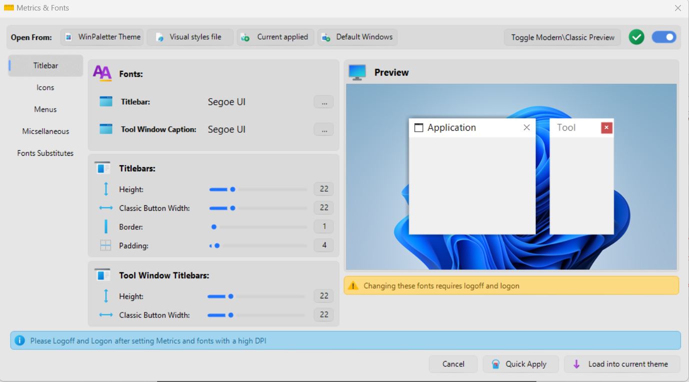 WinPaletter kann das Erscheinungsbild von Windows auf vielfältige Weise wie Fonts, Farben, Größe von Elementen etc. individuell anpassen.