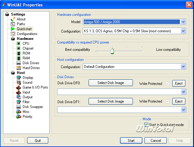 WinUAE emuliert sowohl den Commodore Amiga 500, als auch der Commodore Amiga 1200, 2000 oder 4000.