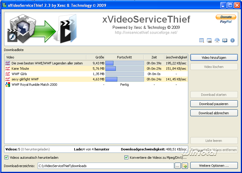xVideoServiceThief rippt Videos von diversen Videoportalen und kann diese in verschiedene Formate konvertieren.
