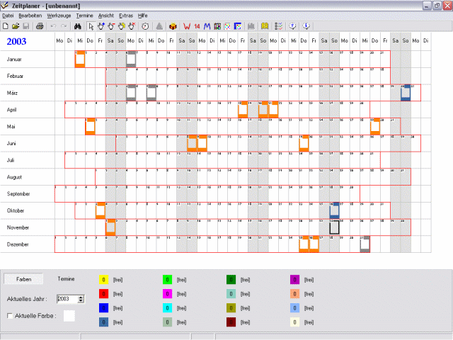 Der Zeitplaner ist ein Jahreskalender mit eigenen Terminen.