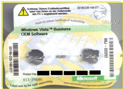 Der Lizenzaufkleber (COA) befindet sich auf dem Rechner/Notebook, die OEM-CD selbst hat kein Echtheitszertifikat.