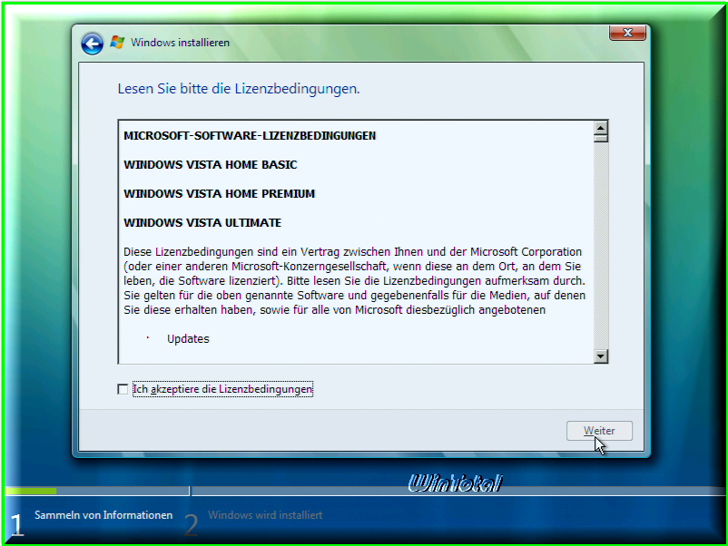 Die Installation untersucht, ob bereits eine ältere, berechtigte Windows-Version installiert und zu einem Update berechtigt ist.
