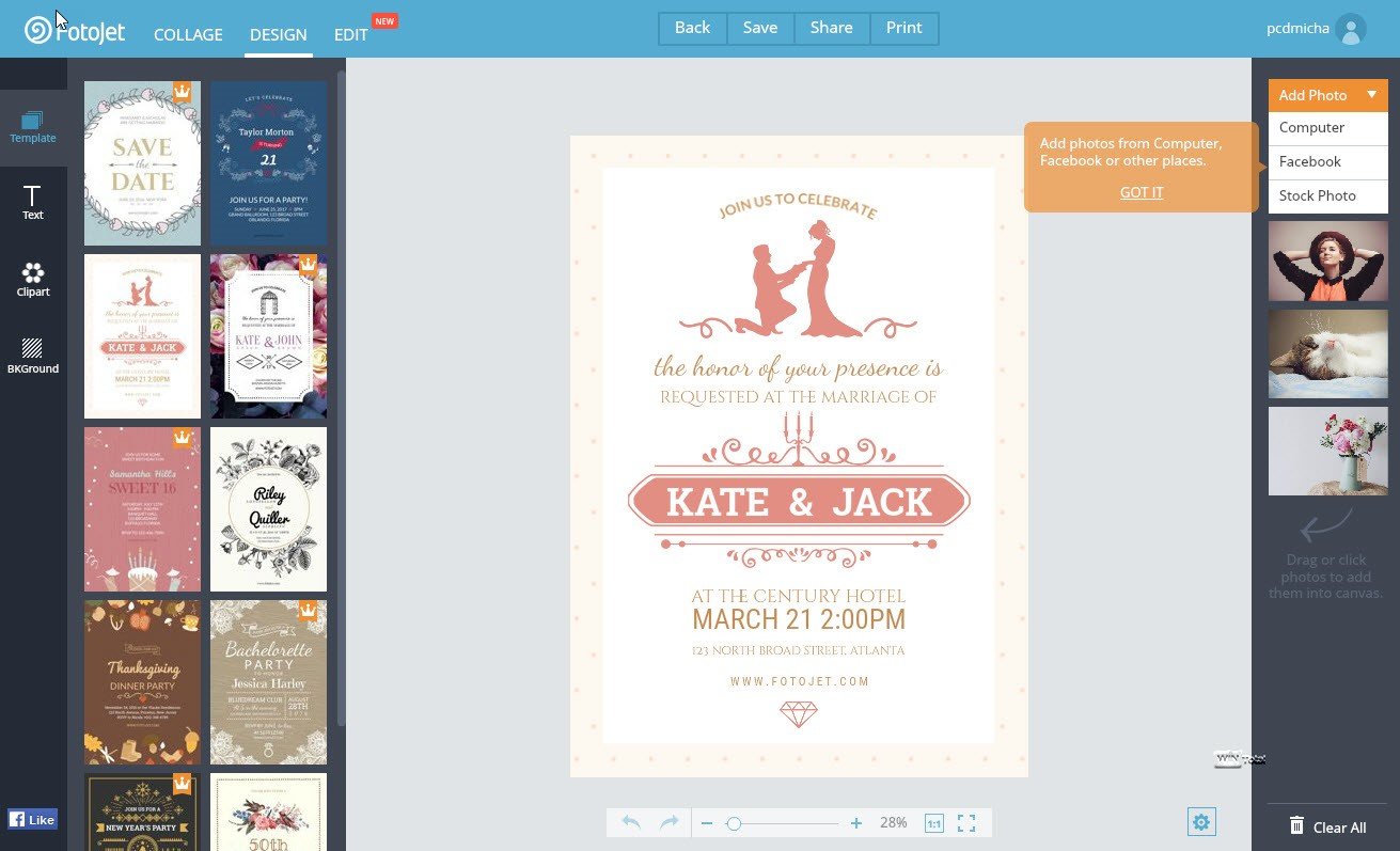 Und genau diese Probleme traten auch beim Test von Fotojet auf. Der Online-Dienst, welcher neben der reinen Bildbearbeitung auch Designvorlagen z.B. für Einladungen und eine Vielzahl von Vorlagen für Fotocollagen bietet, läuft nur mit Adobe Flash. Damit fällt eine Nutzung etwa auf iPads weg und auch der sicherheitsbewusste Anwender wird sich angesichts der monatlich neuen Patchorgien seitens Adobe mehrfach überlegen, ob er wirklich nur wegen eines Online-Fotoeditors dieses Relikt aus besseren Zeiten wieder in den Browser holen will. Was bereits mit HTML 5 und modernen Browsern möglich ist, zeigen andere Hersteller schon zur Genüge.