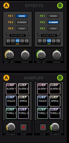 Während der Wiedergabe stehen die üblichen Funktionen wie Pitch, Loop und auch Scratch über virtuelle Turntables zur Verfügung. Der Sound kann über den Equalizer und verschiedene Effektfilter, welche auch verkettet werden können, verändert werden.