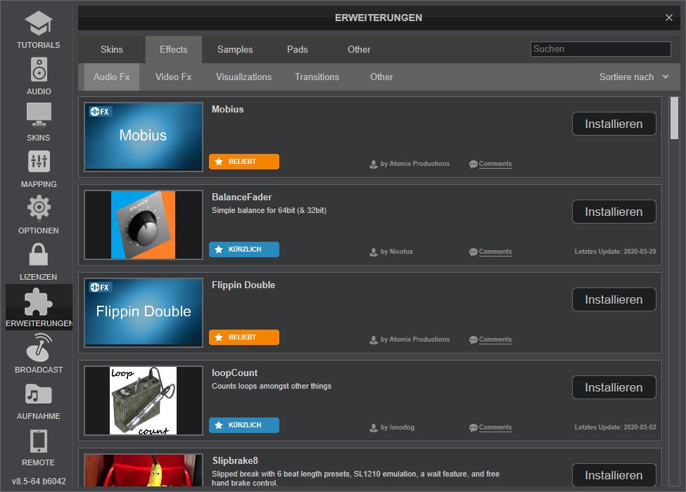 Die Anzahl der Decks wird durch das Skin bestimmt. Bis zu 99 Decks wären theoretisch möglich, scheitert aber an der Darstellung. Es gibt aber auch Skins zum Download, welche 8 Decks gleichzeitig darstellen. Darüber hinaus kann der Funktionsumfang durch kostenlose Erweiterungen wie Effekte, Samples oder Pads angepasst werden.