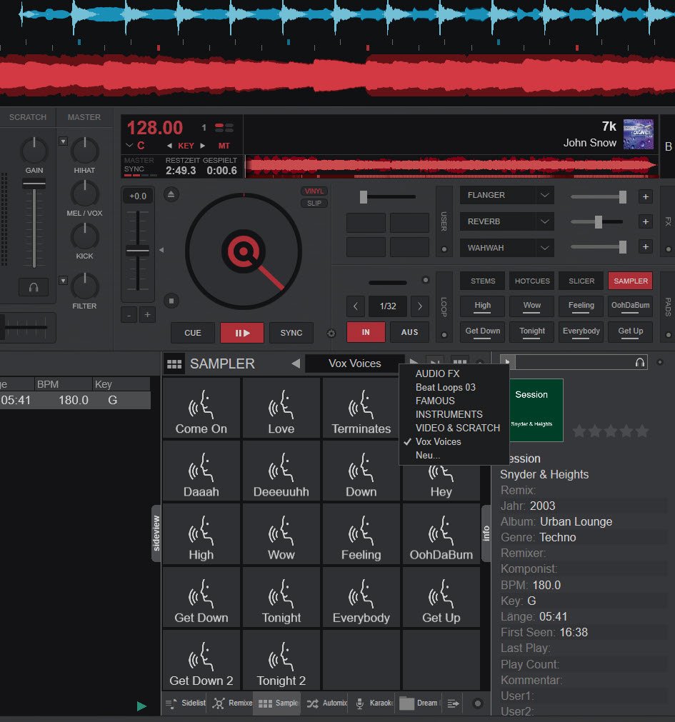 Verschiedene Samples stehen in VirtualDJ zur Auswahl