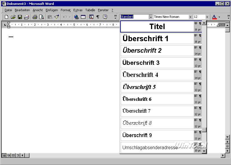 In den neuen Versionen Word 2002/Word 2003 ist das Handling der Formatvorlagen gründlich überarbeitet und benutzerfreundlicher gestaltet worden. Ein spezieller Aufgabenbereich, der am rechten Rand des Arbeitsbereichs angeordnet ist, übernimmt die Aufgaben mehrerer Dialogboxen und Menübefehle. Auch die hier am Beispiel von Word 2000 beschriebene Formatvorlagenvorschau ist in diesen Bereich eingeordnet. Es ist aber zu empfehlen, die „alte“ Funktionalität von Word wieder herzustellen. Ebenfalls mit Extras -> Anpassen können die alten Befehle in das Formatmenü eingeordnet werden. Das ist besonders für die Wordbefehle Format -> Formatvorlage und Format -> Formatvorlage bearbeiten sinnvoll, die über den Aufgabenbereich nur umständlich zu erreichen sind.