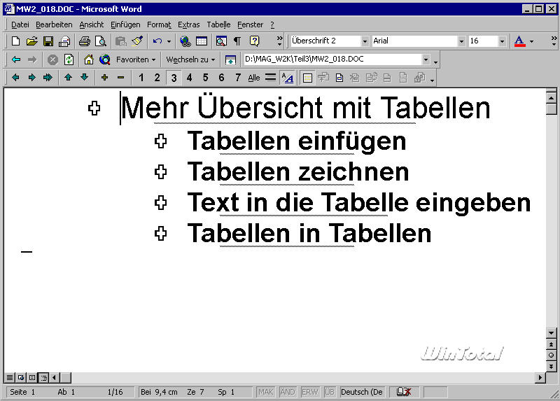 Die Arbeit mit Inhaltsverzeichnissen