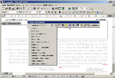 Bei wissenschaftlichen Arbeiten sind oft Änderungen bis zur letzten Minute nötig. Manchmal steht erst kurz vor Ultimo fest, welche Reihenfolge die Kapitel haben, welche Abbildungen tatsächlich im Text Platz finden oder wie die Fußnoten aussehen sollen. Schlimmstenfalls wird der Text noch einmal vollständig überarbeitet. Word bietet aber alle Funktionen, um den Schreiber von handwerklichen Arbeiten zu befreien und gibt so Zeit für die inhaltliche Tätigkeit. Der Artikel ist am Beispiel von Word 2000 geschrieben, sinngemäß und bei den geschilderten Handlungen aber auf alle anderen Textverarbeitungsprogramme übertragbar.