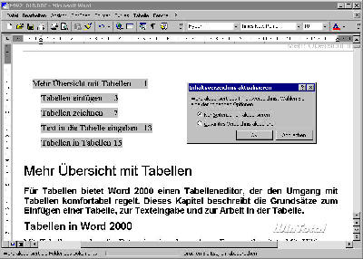 Abb. 1: Bequem und fehlerfrei – Bei Bedarf schreibt Word das Inhaltsverzeichnis völlig neu und erfasst dabei jede Änderung in der Seitenfolge automatisch. |