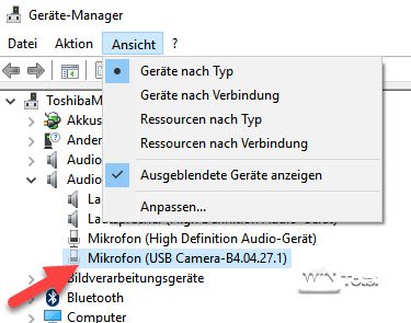Wenn Sie ein Gerät ausgeblendet haben, weil es beispielswiese als unbekannt erkannt wurde, können über „Ansicht“ auch ausgeblendete Geräte angezeigt werden.