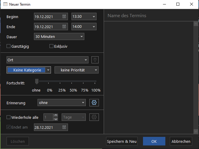 | Wiederkehrende Termine | [yes] | [yes] | [yes] | [yes] | [yes] | [yes] | [yes] |