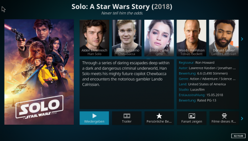 Für alle Medieninhalte werden zusätzliche Meta-Daten wie Cover, Schauspieler, Genre, Erscheinungsjahr oder die Beschreibung der Handlung heruntergeladen und ergänzt. In der Detailansicht sehen Sie dann beispielsweise für einen Film weitere Infos wie die Handlung, Schauspieler und viele mehr.