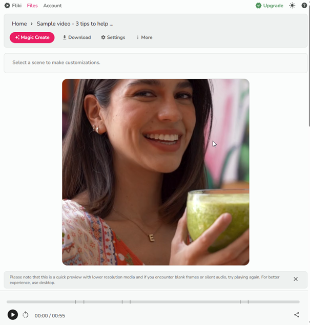 Das Story-Board für das Video kann angepasst werden. Der Dienst bietet über 900 Stimmen in 75 Sprachen und eine große Mediensammlung mit Videoschnipseln, Bildern und Musik. Die kostenlose Version bietet alle Funktionen, kann jedoch nur Videos mit bis zu 5 Minuten Laufzeit und mit Wasserzeichen zum Download anbieten.