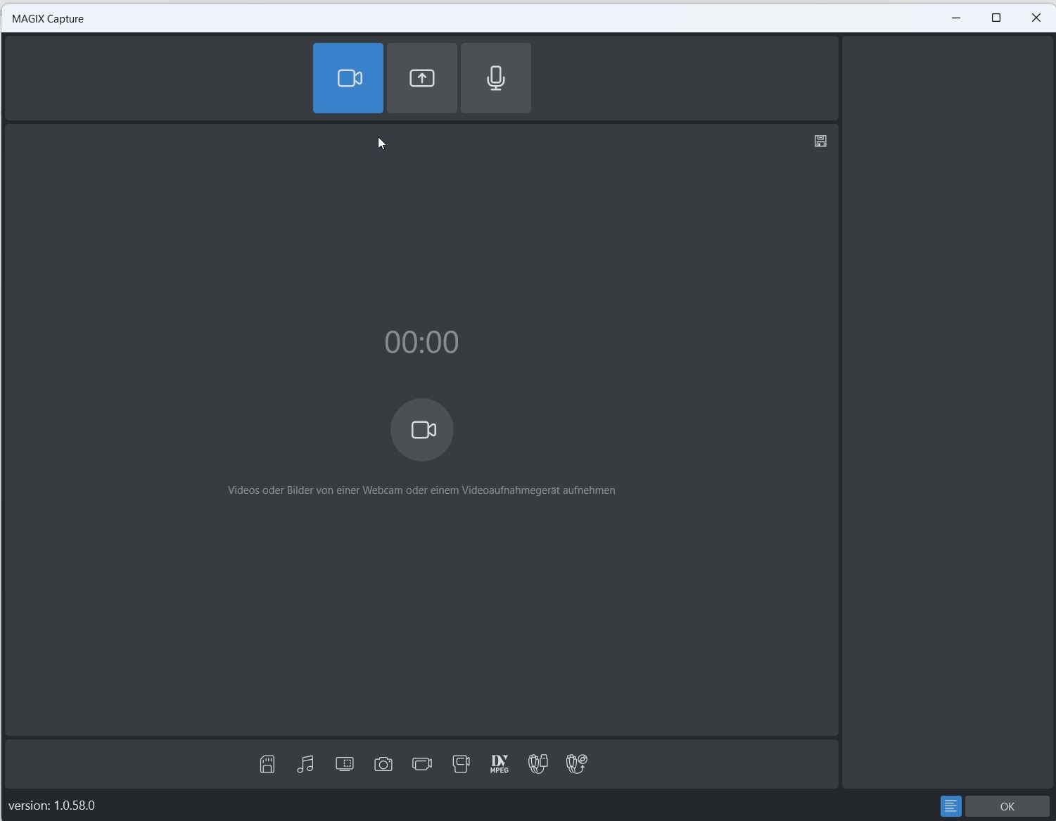 Auch die Aufnahmefunktion Magix Capture hat ein Facelift erhalten und lässt sich nun noch einfacher und intuitiver bedienen. Der Dialog vereint Screencapture, Audio und Webcam-Aufnahme in einem Fenster.