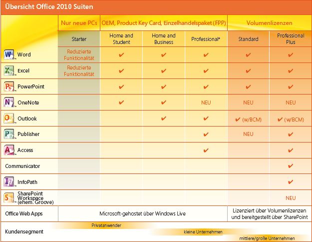 Von Office 2010 soll es bisher nur 4 verschiedene Editionen geben, von denen nur 3 im Handel verfügbar sind: