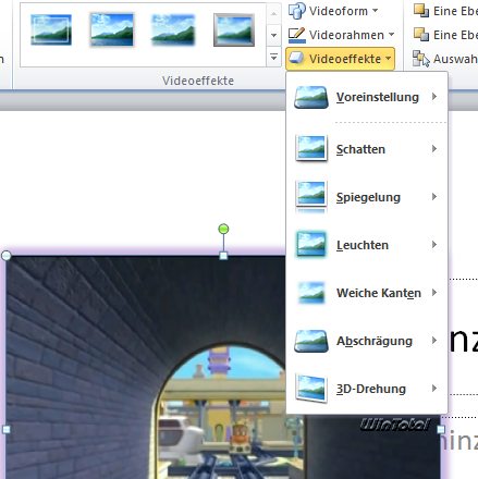 Innerhalb von PowerPoint 2010 wurden auch die Möglichkeiten bei der Nutzung von Videos verbessert. Diese können nun gekürzt oder mit zahlreichen Effekten – analog zu Grafiken – versehen werden.