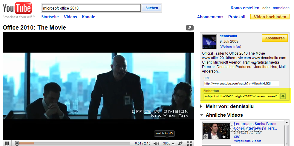 Mit diesem Code kann das Video dann problemlos in die Präsentation eingebettet werden.