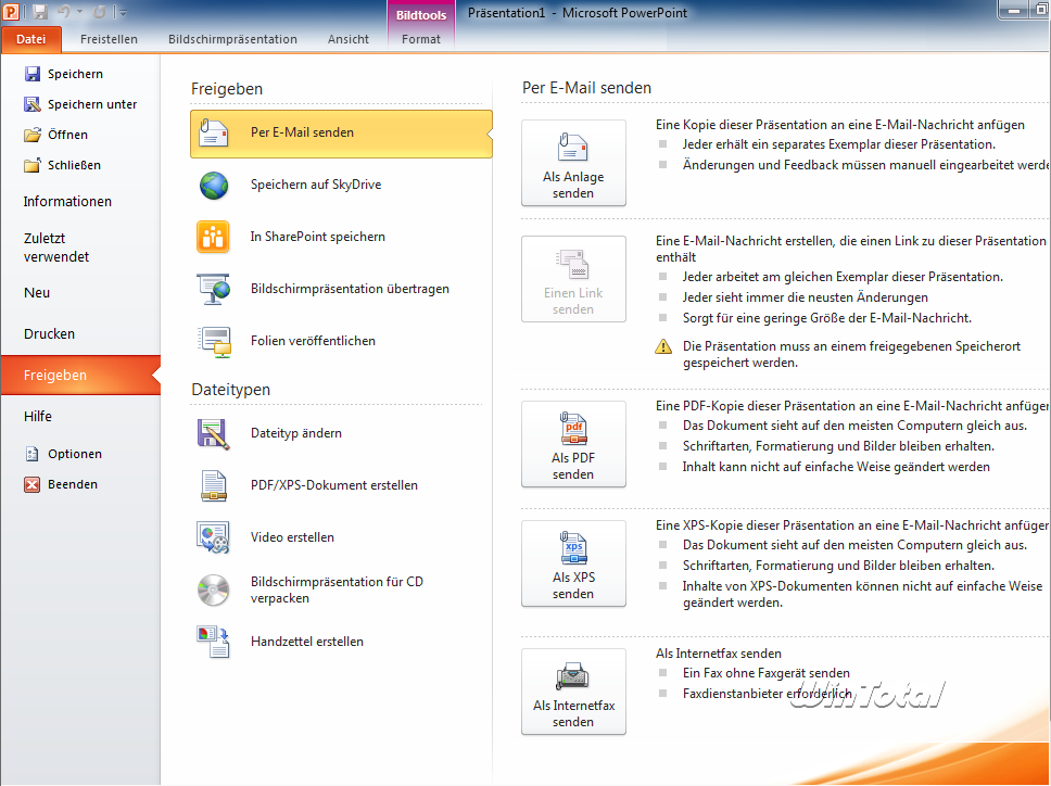 In PowerPoint 2010 kommt der neue Bereich „Backstage“ nochmals sehr gut zur Geltung.