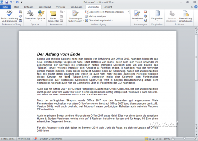 Bis auf die oben dargestellten Neuerungen am Design der Oberfläche halten sich die Veränderungen für Word 2010 gegenüber dem Vorgänger in Grenzen.