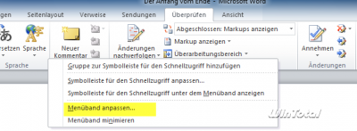 Das Ribbon (in der Dokumentation mit Menüband bezeichnet) als zentraler Bestandteil der Office-Benutzerführung lässt sich seit Office 2010 nun auch den eigenen Wünschen anpassen.