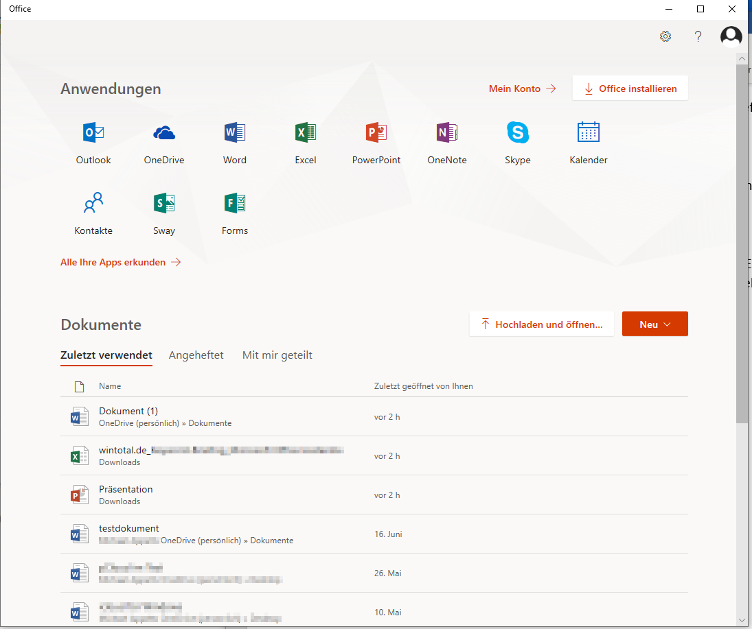 4. Die „Mein Office-App“ für Windows 10 als Hub zu Office Online