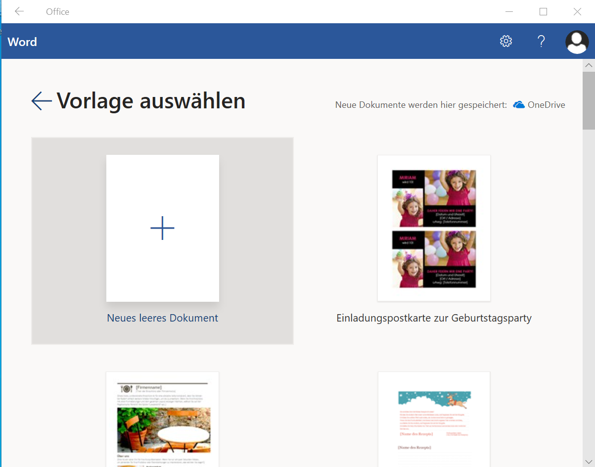 Neben leeren Dokumenten steht auch eine Auswahl an Vorlagen für jede der Apps zur Verfügung.