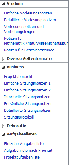 Die Abbildung zeigt eine Auswahl enthaltener Seitenvorlagen – der Anwender findet de facto für die meisten Einsatzbereiche eine verwertbare Vorlage als Einstieg in ein Thema. Falls mal etwas nicht gleich passt, kann die Seite nach eigenen Wünschen verändert und als Seitenvorlage gespeichert werden. Falls nötig, kann jede beliebige Seite als Standardvorgabe für den Befehl Neue Seite voreingestellt werden. Das Schreiben selbst ist ganz einfach: jeder Klick auf einen leeren Seitenbereich erstellt eine Schreibbereich, der seinerseits frei verschoben werden kann. Zum Schreiben selbst ist wenig zu sagen: Der erfahrene Word-Anwender wird einige Tastenkombinationen wiederfinden, andere vermissen. Zum Formatieren des Texts stehen im Register Start die üblichen Werkzeuge für die Formatierung des Basistexts bereit, 11 Formatvorlagen (Überschrift 1-6, Seitentitel, Zitat, Anführungszeichen, Code und Normal) machen die Textformatierung einfach und überschaubar. Das Programm bietet deutlich weniger Werkzeuge als Word – auch hier ist es eine Frage der Betrachtung, wie man selbst das empfindet. Jede Seite lässt sich übrigens mit Datei -> Senden -> An Word senden direkt in Word öffnen und dort problemlos weiter bearbeiten: Die Verbindung zu OnNote wird dabei allerdings getrennt, die Word-Datei kann (muss) separat gespeichert werden.