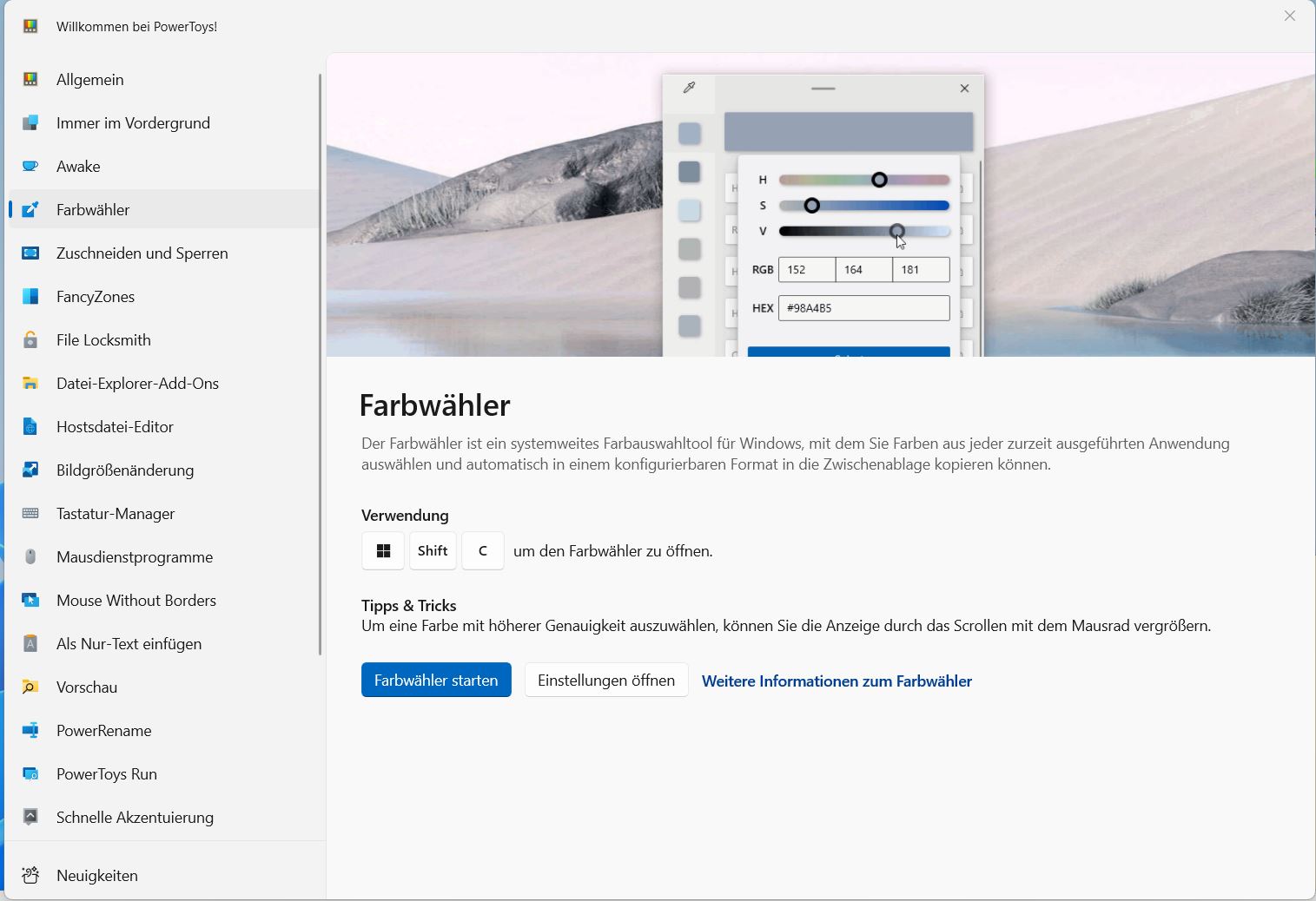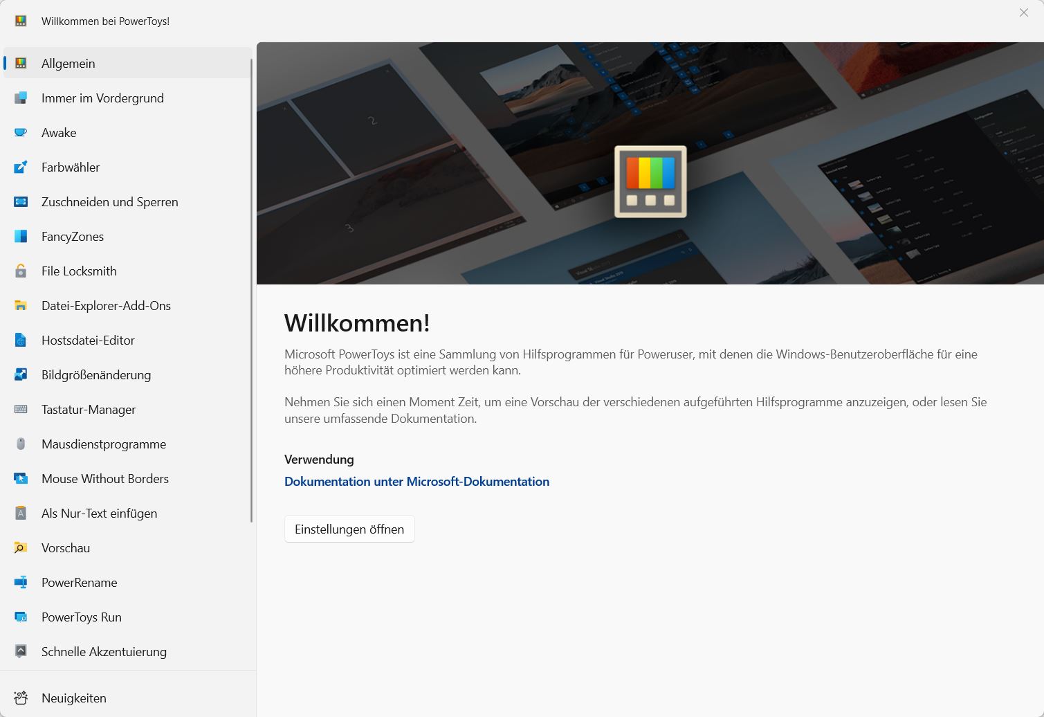 2. Willkommen bei PowerToys