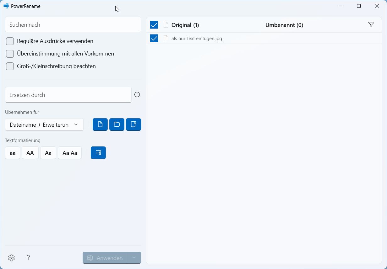 Um mehrere Dateien auf einmal umzubenennen, können Sie „PowerRename“ verwenden. Das Tool integriert sich in das erweiterte Kontextmenü von Windows und kann dort Dateien automatisch und einheitlich umbenennen.