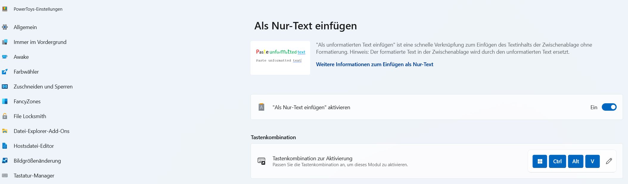 Die Funktion „Als Nur-Text einfügen“ ist dann praktisch, wenn Sie Texte ohne Formatierung in Word oder andere Programme übernehmen möchten. Kopieren Sie dazu den Text mit der normalen Tastenkombination STRG+C oder STRG+A für ausscheiden und drücken Sie dann WIN+STRG+ALT+V, um den Text ohne Formatierung einzufügen.