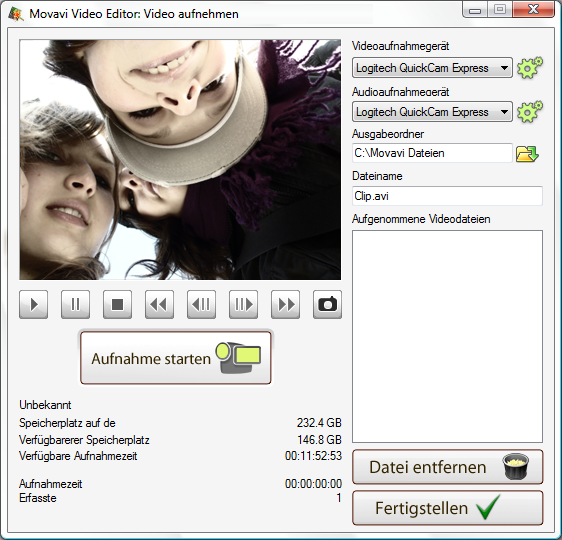 Movavi Video Editor 6 Aufnahme |