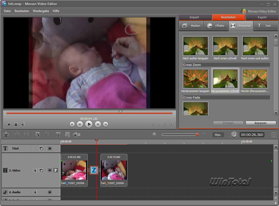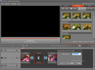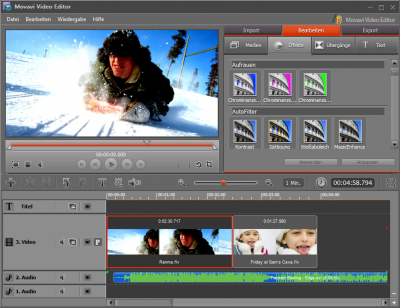 Movavi Video Editor 6 könnte diese Wünsche vielleicht befriedigen. Die als Download nur knapp 56 MB große und günstige Software macht zumindest von den Features her bereits einen guten Eindruck: