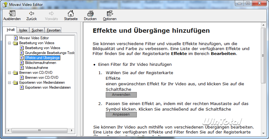 Was uns weniger gefiel, ist die Hilfedatei. Gerade für Einsteiger sollte man eine bebilderte Hilfedatei mitliefern, welche an einem Beispielprojekt die Funktionsweise der Software erklärt. Die gesamte Hilfedatei beim Movavi Video Editor dürfte nicht mehr als 30 Sätze umfassen – das ist selbst für ein Produkt dieser Preisklasse einfach zu wenig.