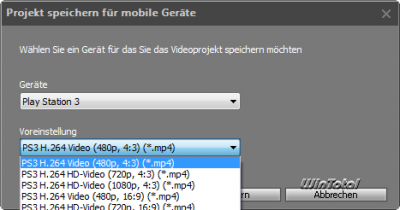 Der Video Editor 6 kennt auch viele Ausgabegeräte und die notwendigen Voreinstellungen für eine optimale Wiedergabe auf diesen. Gibt man das Gerät vor, bietet der Dialog verschiedene Profile für dieses Endgerät, die ebenfalls noch editiert werden können.
