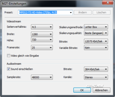 Die Ausgabe des fertigen Films kann wieder als Datei in den Formaten AVI (inkl. DivX, XviD, MJPEG und andere Codecs), MPEG 1,2, MP4 (inkl. H.263, H.264 und andere Codecs), Windows Media Video (WMV), 3GP (3GPP, 3GPP2), QuickTime (MOV, QT) Real Media (RM, RMVB), Flash (FLV), M2T erfolgen, wobei sich hier die Parameter wie Seitenverhältnis, Skalierung, Bitrate und Framerate noch anpassen lassen.