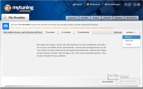 Der File Shredder vernichtet Daten gründlich, so dass sie nicht mehr restauriert werden können.