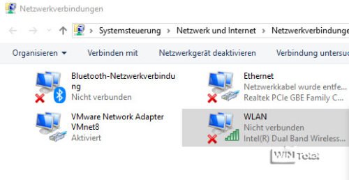 Unter Windows 10 erreichen Sie das gleiche Fenster über „Netzwerk und Internet“ in den Einstellungen und hier hinter dem Eintrag „Adapteroptionen ändern“.