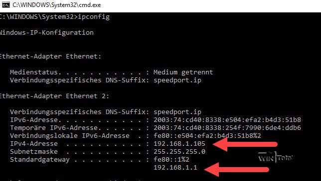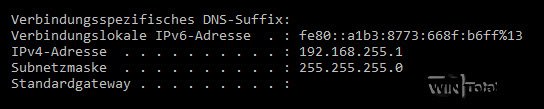 Leider klappt das aus verschiedenen Gründen nicht immer. Sie können das selbst prüfen, indem Sie in der Kommandozeile den Befehl ipconfig eingeben. Windows listet alle Netzwerk-Adapter auf und zeigt deren Verbindungseigenschaften.