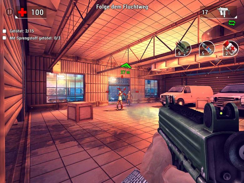 Die Steuerung ist sehr intuitiv und perfekt auf die Touch-Bedienung ausgerichtet. Geschossen wird automatisch, sobald der Fokus auf einem Zombie liegt. Dank eines interaktiven Tutorials lernen Sie diese beim ersten Start detailliert kennen. Im Anschluss beginnen Sie auch schon direkt mit dem ersten Auftrag.