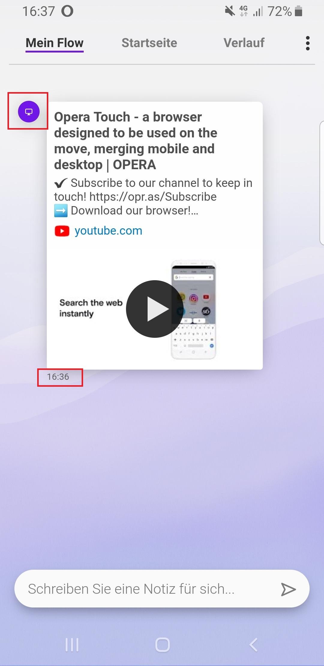 • Mit Hilfe von „Mein Flow“ können die Inhalte von Opera Touch mit dem Desktop-Computer ausgetauscht werden.