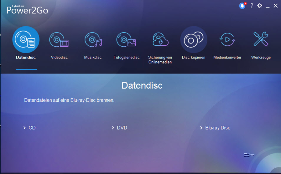 CyberLink Power2Go Essential ist eine Software-Gesamtlösung zum Brennen, Sichern und Konvertieren, in der Basisversion kostenlos