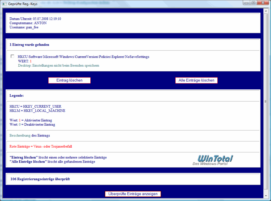 Tools, wie z.B. Spybot Search & Destroy zeigen Cookie Registryschlüssel P3PHistory an