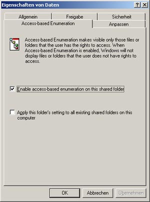 Inhaltsanzeige von Fileserver-Freigaben auf Unterordner mit Zugriffsberechtigungen eingrenzen