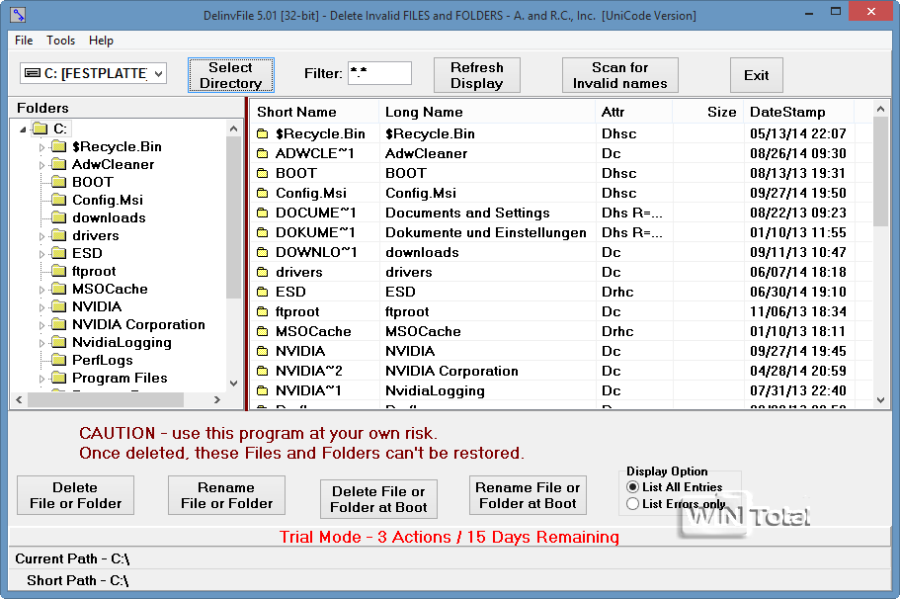 Das Tool DelinvFile kann Dateien löschen, die normalerweise über Windows nicht gelöscht werden können.