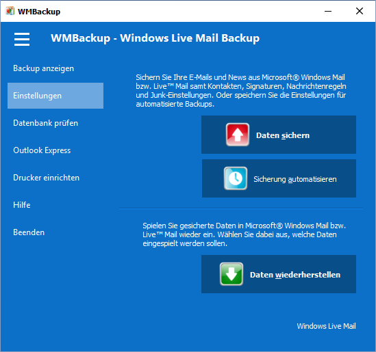 MOBackup sichert regelmäßig alle alle relevanten Daten von Microsoft Outlook (PST-Datei) wie Mails, Kontakte, Kalender, Einstellungen etc.